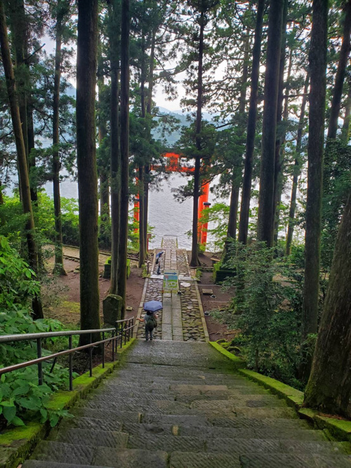階段を降りると芦ノ湖へと続いています。