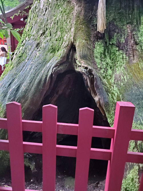 安産杉と呼ばれる大きな杉の木のある神社は、