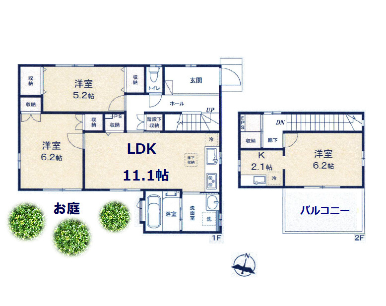 南側にお庭があり、南側のバルコニーも広々!
